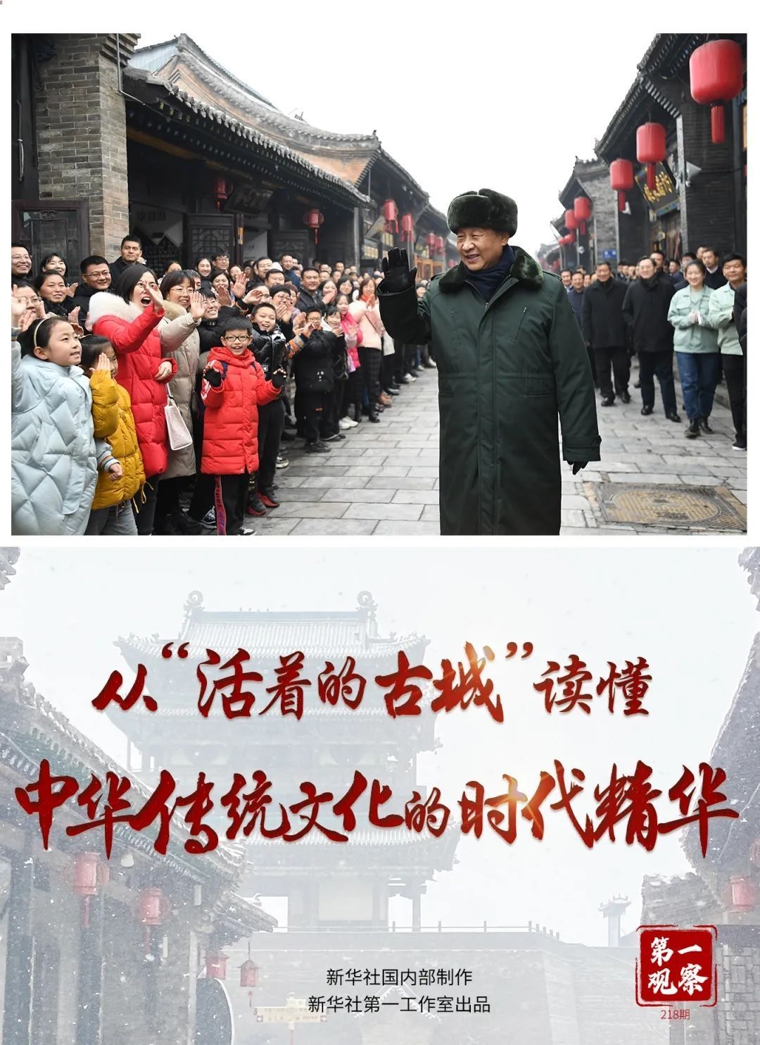 1月27日上午,习近平总书记来到山西平遥古城,在这座“活着的古城”中触摸历史、寻访传统,传递出守护中华民族文化根脉的历史自觉和文化自信。