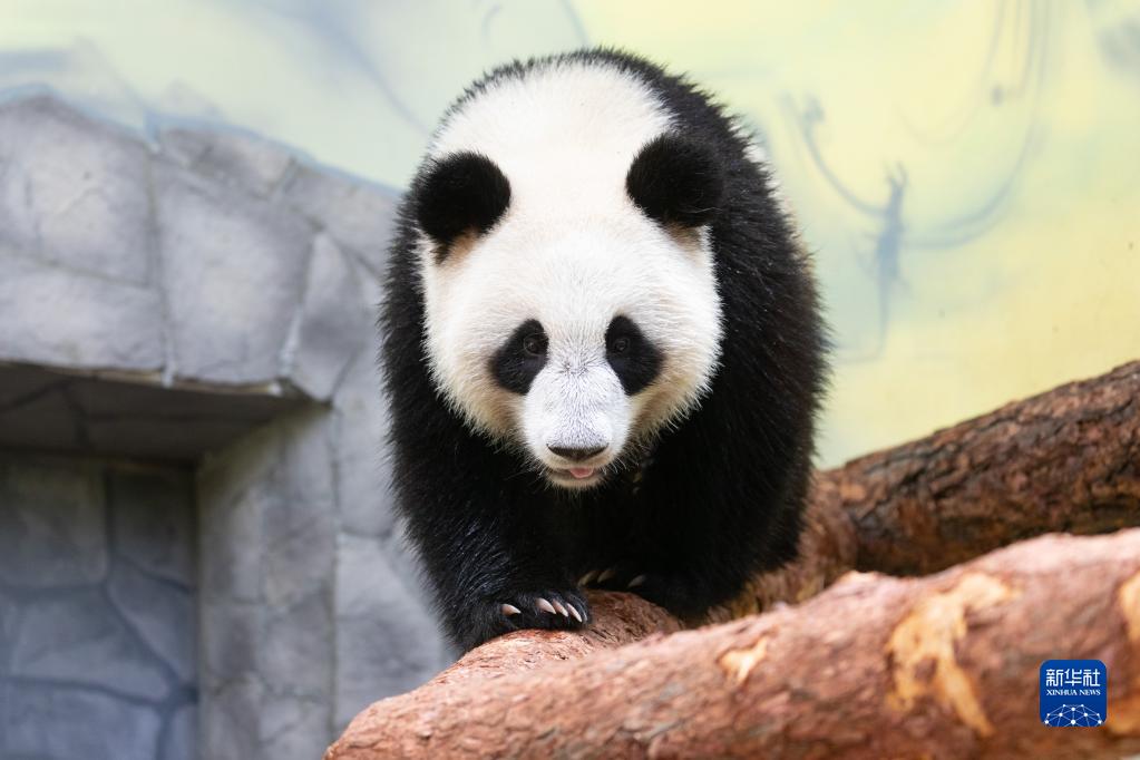 这是2019年6月4日在俄罗斯莫斯科动物园拍摄的大熊猫“丁丁”。新华社记者白雪骐摄