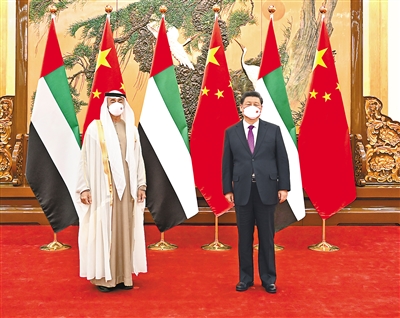 习近平指出,近年来,中阿关系保持高水平发展,成为中国同中东国家关系典范。双方深入开展抗击新冠肺炎疫情合作,克服疫情不利影响稳步推进各领域务实合作。中方视阿联酋为好朋友、好伙伴、好兄弟,愿同阿方一道,把握两国友好大方向,打造面向新时代的中阿全面战略伙伴关系。