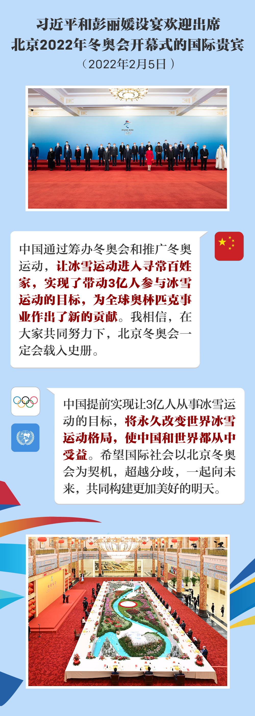 习近平和彭丽媛设宴欢迎出席北京2022年冬奥会开幕式的国际贵宾(2022年2月5日)