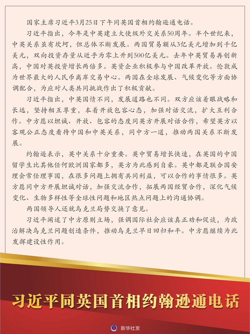 新华社北京3月25日电 国家主席习近平3月25日下午同英国首相约翰逊通电话。