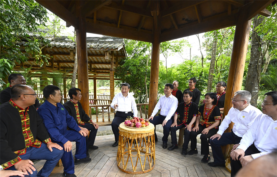 习近平在海南五指山市考察调研 来源:人民网 发布时间:2022-04-12 16:00:11 浏览次数: 次 【字体:小 大】 11日下午,习近平总书记来到海南省五指山市,先后考察了海南热带雨林国家公园五指山片区、水满乡毛纳村,了解海南保护自然环境和生物多样性、巩固拓展脱贫攻坚成果同乡村振兴有效衔接等情况。 (文字:人民日报记者杜尚泽,摄影:新华社记者李学仁、谢环驰、燕雁) 来源: 人民网 分享到: 关闭本页 【打印正文】