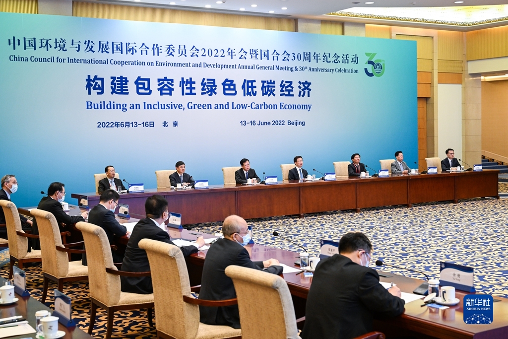 新华社北京6月17日电 中共中央政治局常委、国务院副总理、中国环境与发展国际合作委员会主席韩正16日在北京出席国合会2022年年会暨国合会30周年纪念活动。本次年会以“构建包容性绿色低碳经济”为主题。