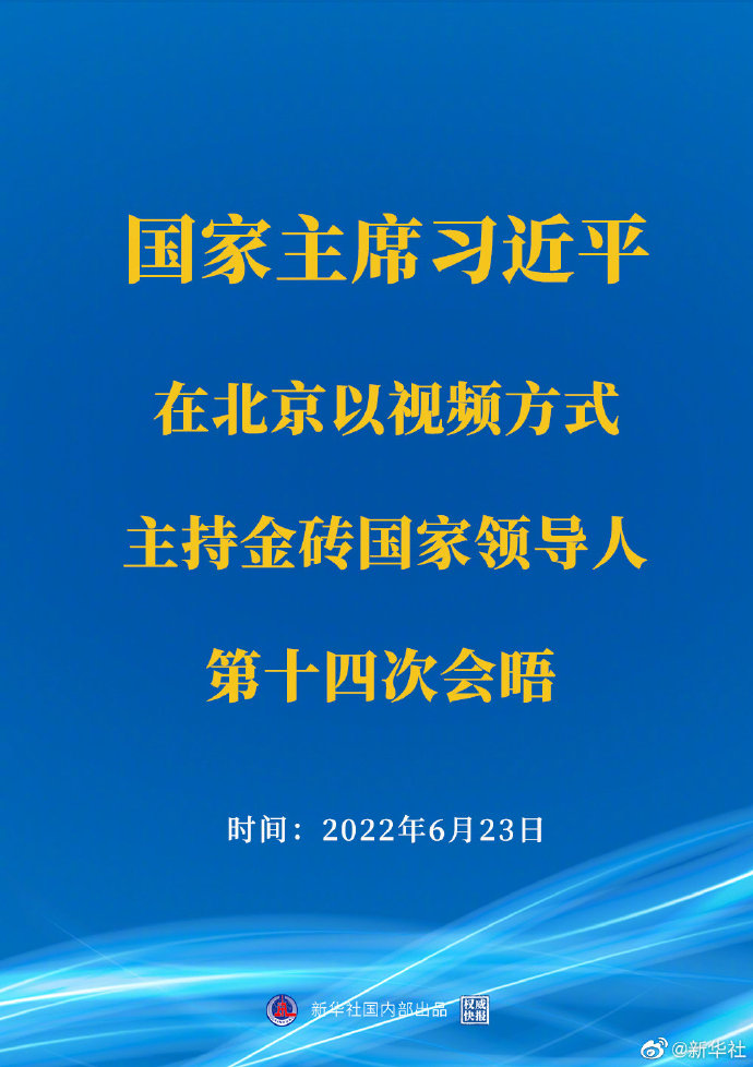 权威快报丨习近平主席主持金砖国家领导人第十四次会晤 来源:人民网 发布时间:2022-06-23 22:00:12 浏览次数: 次 【字体:小 大】 国家主席习近平23日晚在北京以视频方式主持金砖国家领导人第十四次会晤。 来源: 人民网 分享到: 关闭本页 【打印正文】