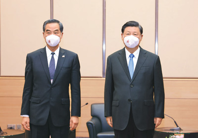 梁振英感谢习近平主席对他的关心和鼓励,表示将竭尽所能,继续为香港和国家服务。