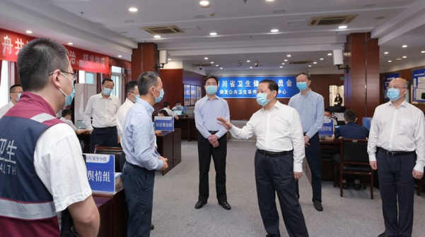 6月22日,省委书记彭清华前往省卫生健康委调研,主持召开省委应对新冠肺炎疫情工作领导小组会议并讲话(图片来源:四川在线)