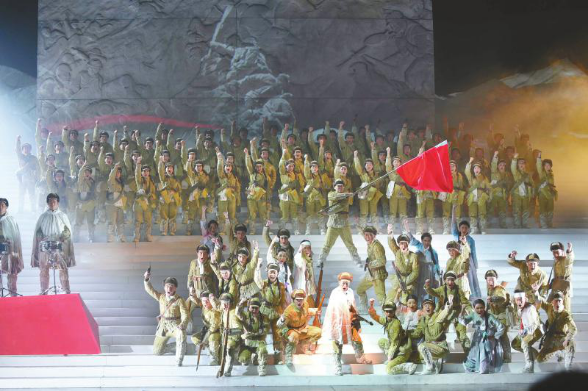 10月16日,以反映志愿军特级战斗英雄黄继光的光辉事迹为主线的复排歌剧《同心结》在四川大剧院首演(四川日报全媒体记者 欧阳杰 摄,图片来源:四川日报)