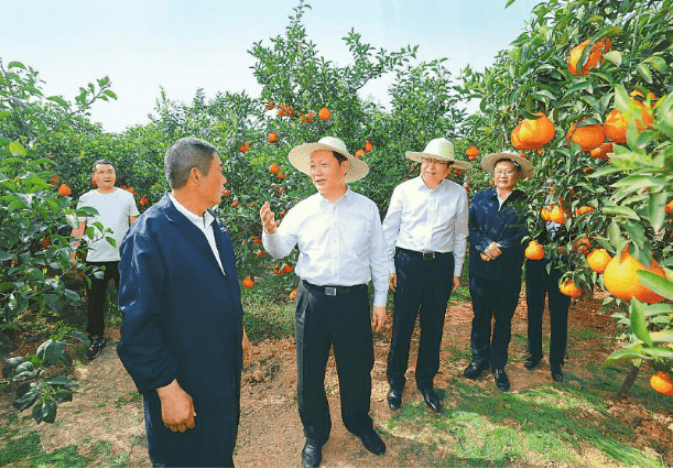 3月29日,省委书记彭清华到丹棱县齐乐镇丹橙现代农业园区调研,与果农交谈,询问了解品种特性、亩均产量、品牌打造、市场行情等情况(四川日报全媒体记者 欧阳杰 摄 图片来源:四川日报)