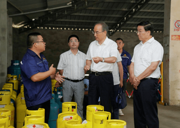 9月5日,省委副书记、省长黄强在彭州市隆丰街道液化气配送中心察看了解罐装液化气储存配送情况(田为 摄,图片来源:四川省人民政府网)
