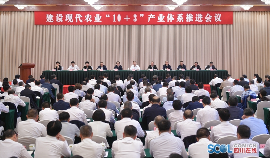 现代农业“10+3”产业体系,即建设川粮油、川猪、川茶、川菜、川酒、川竹、川果、川药、川牛羊、川鱼10大优势特色产业和现代农业种业、现代农业装备、现代农业烘干冷链物流3大先导性支撑产业。