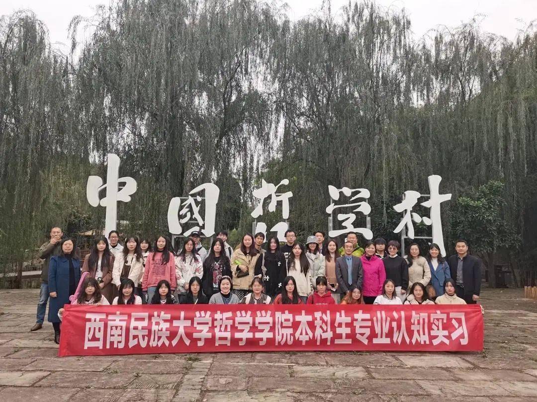 前来参观学习的西南民大师生一行在“中国哲学村”前的合影