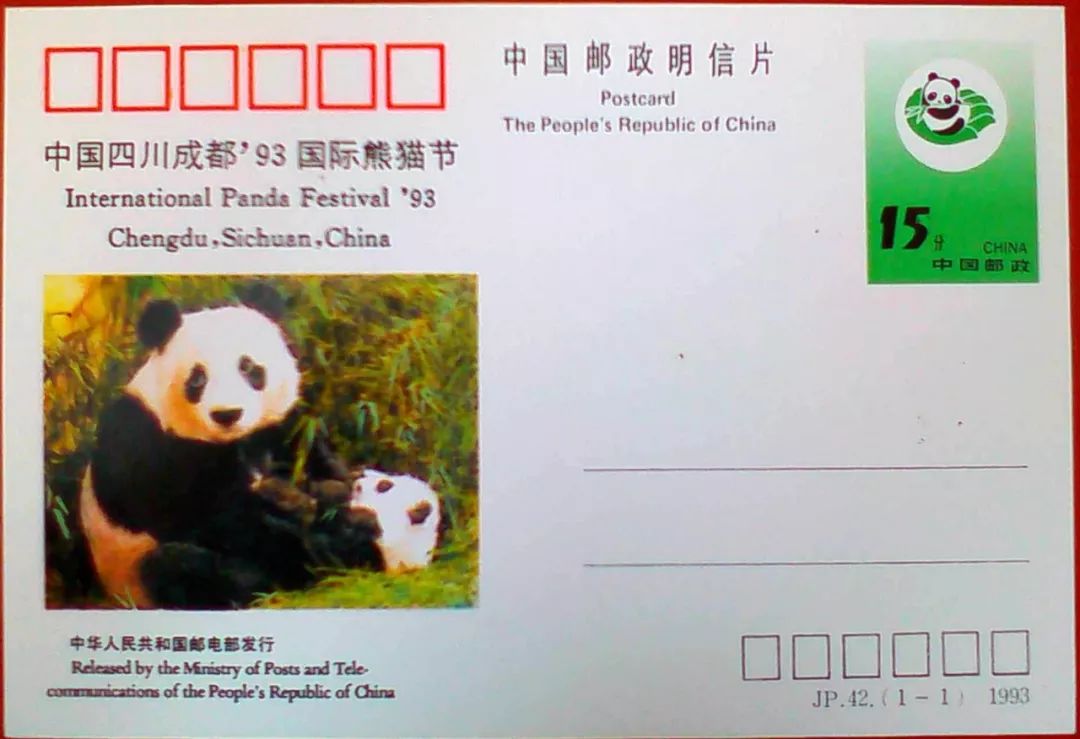 1993年邮电部发行的中国四川成都’93国际熊猫节邮资明信片