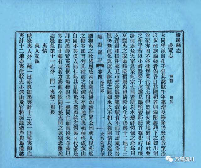 民国三年(1914)峨边改厅为县,此前,在清光绪三十二年(1906)时,通判傅达原(贵阳人)奉檄编纂乡土志,便委厅人王定远、张忠武等人为编辑委员,贾希曾为采访员,着手编纂乡土志,后因事未竟全功。至民国初年,通判王家容(贵州修文县人,光绪十年(1844)举人)应厅议会之请,设局开修厅志,未果。越二年改厅为县,李宗煌再延聘贾希曾为志局采访局长,重举修志事。明年,荣县人杨亶(成都高等学校毕业)来代理县知事,其友人李仙根同赴峨边,便请其襄助编纂志事,历时数月便告成书铅字付印,线装八册。