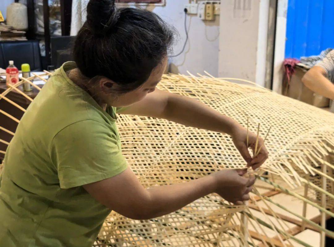 据了解,通过采取“公司+合作社+农户”的生产模式,辐射带动周边农户增收致富,年销售额1500万元。当天下午记者在厂房看见,当地的竹编手艺人们正在编织一个大型竹编墙饰装置,7天后,它将出现在成都某餐饮店内,融入市民的日常消费场景。