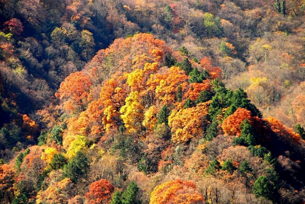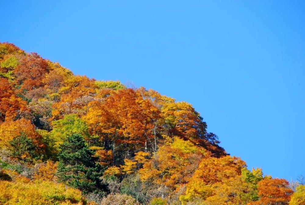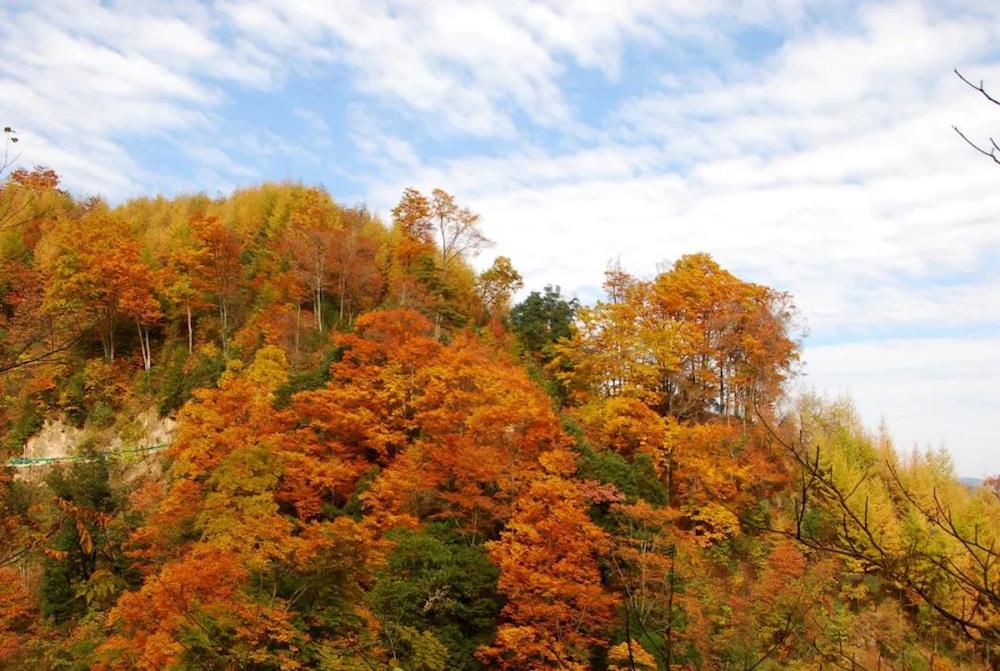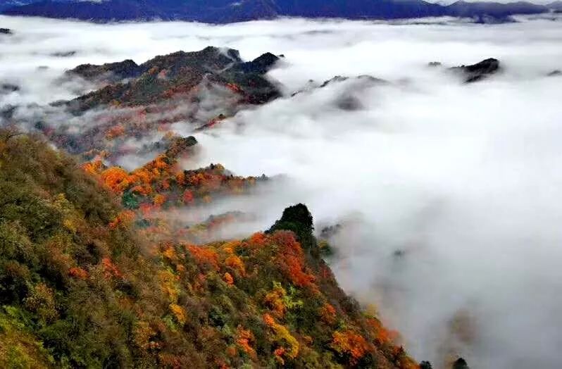 光雾山,被誉为“中国红叶第一山”,四时之美,以秋天为最,绵延百里的红叶色彩斑斓,蓝、绿、黄、橙、红呈梯次变幻。