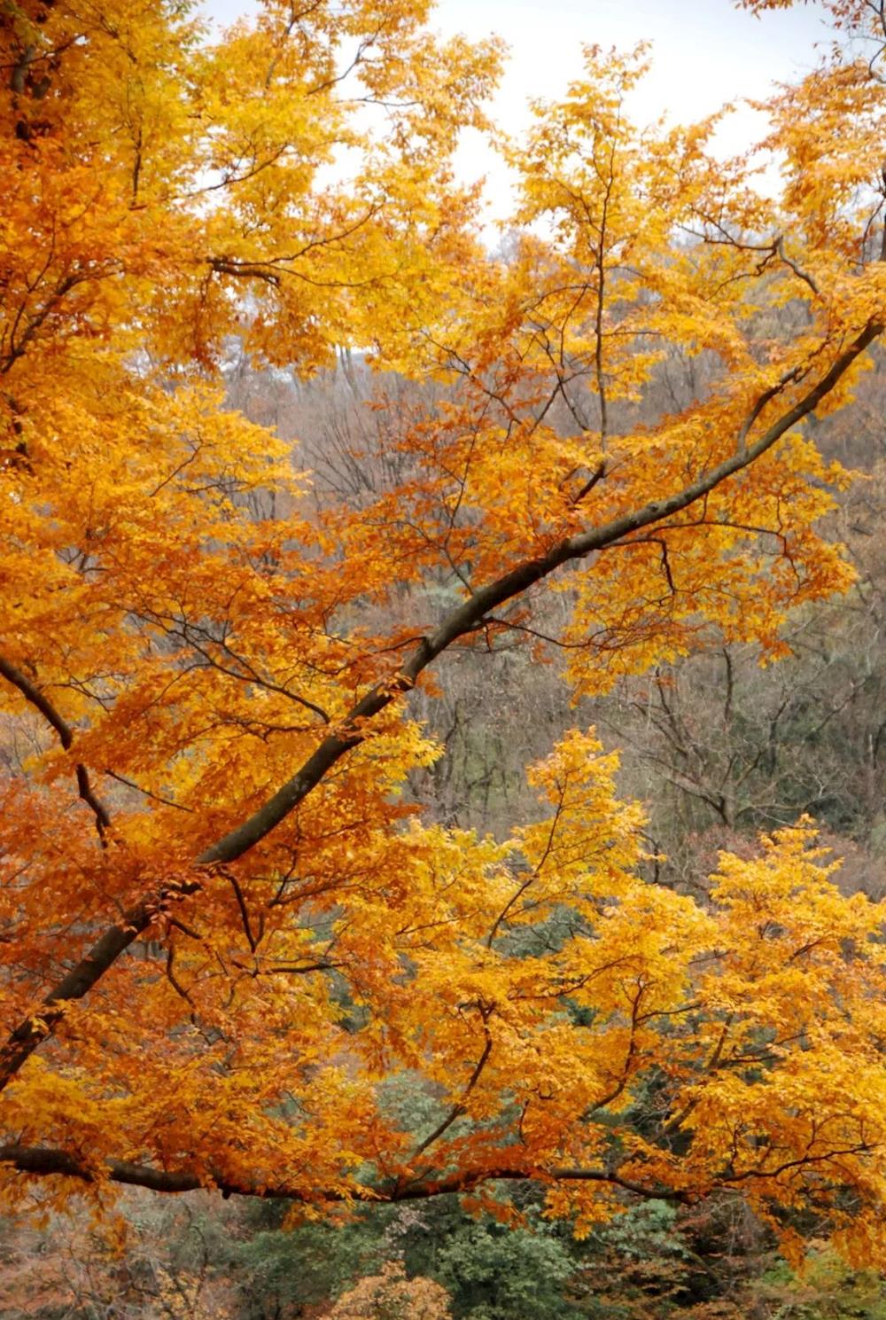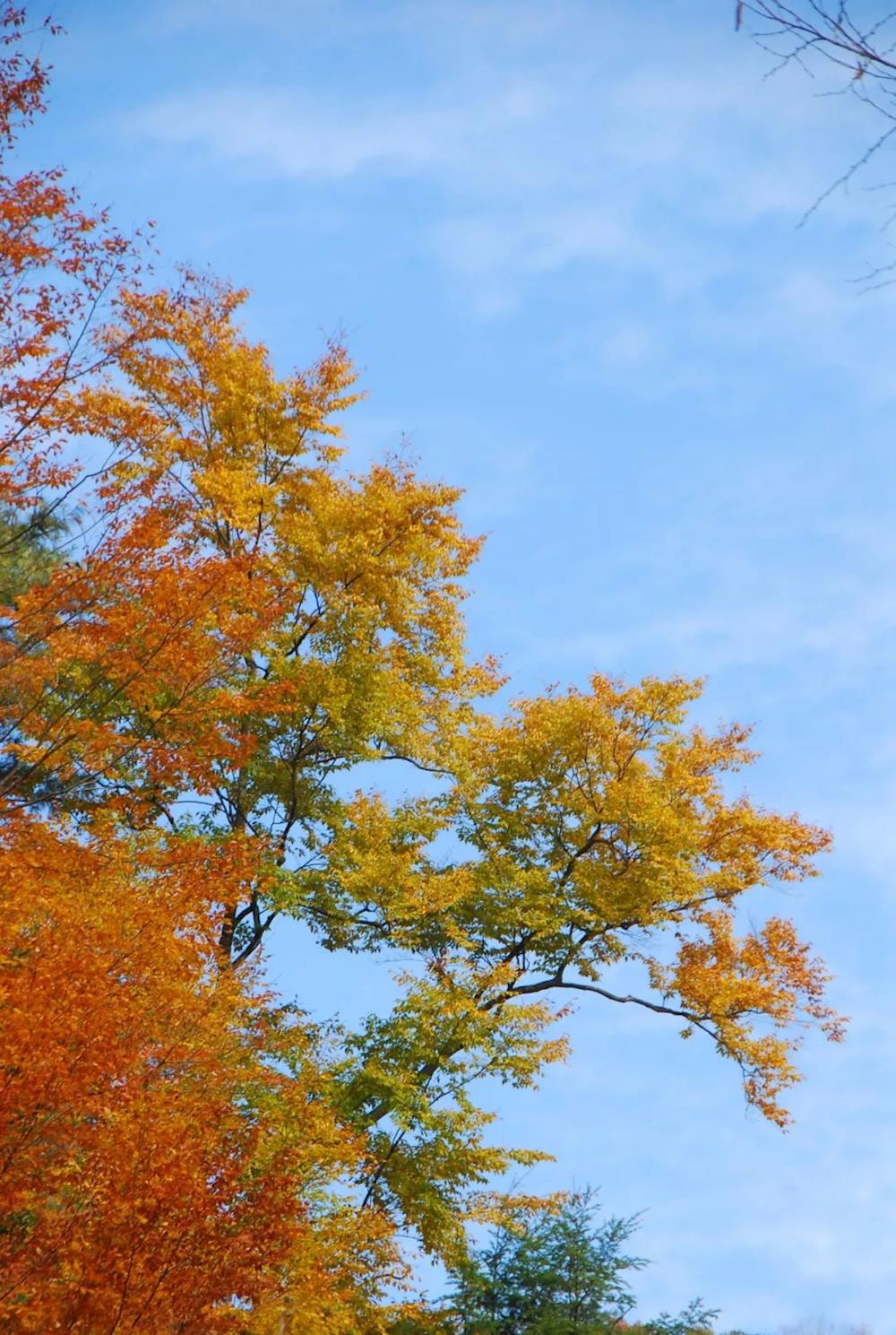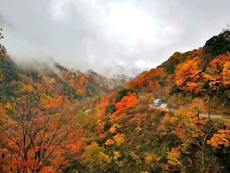 这里秋天的红叶,时而挂满山林,时而铺满小路,时而倘徉流水间,落于石上,蜿蜒而来。红红的树叶犹如地毯铺到了天外,林子边自下而上飘来一缕薄雾,象流云,像青纱.......