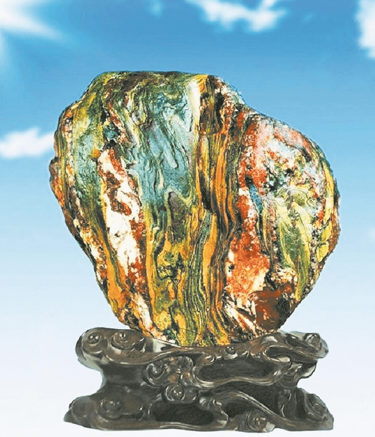 我想说的是因为江里金沙的存在,水冲金染之后,又被千年暖阳裸露暴晒,水涨水退,风拂日抚,金沙江中才出现了巧夺天工,让人叹为观止的奇石:中华金沙彩,是奇石家族中的熊猫。