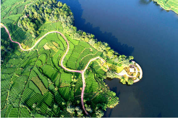 在雅安名山,一条至美茶源绿道串联起令人陶醉的茶园风光。充满诗情画意的月亮湖景区便是这条线上的重要节点。
