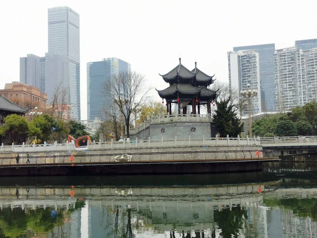 我这个人,就喜欢胡思乱想。我忽然觉得,做客成都,最“巴适”莫过于住在合江亭附近。合江亭,好像是一把折扇的扇子轴儿,府河与南河,如同这把折扇外边的两根大骨。唰啦啦一打开这幅“锦官城”扇面,成都市内东、北、西三个方向的美景,似乎都是以此为圆心铺展开来的:府河、兰桂坊、安顺廊桥、太古里、大慈寺、人民公园、宽窄巷子、武侯祠、锦里、青羊宫、四川博物院、百花潭、杜甫草堂……您瞧瞧,锦城佳处几乎被“网罗殆尽”了吧?