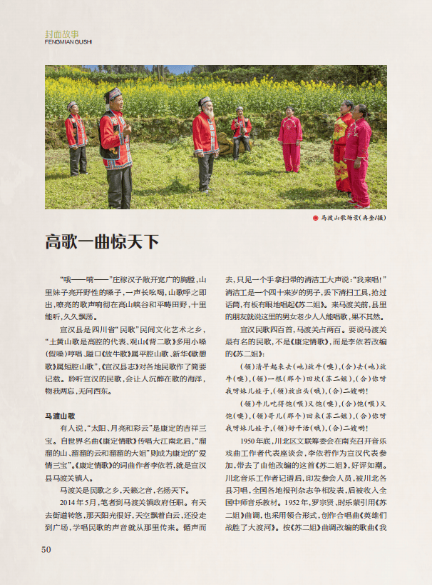 宣汉民歌四百首,马渡关占两百。要说马渡关最有名的民歌,不是《康定情歌》,而是李依若改编的《苏二姐》: