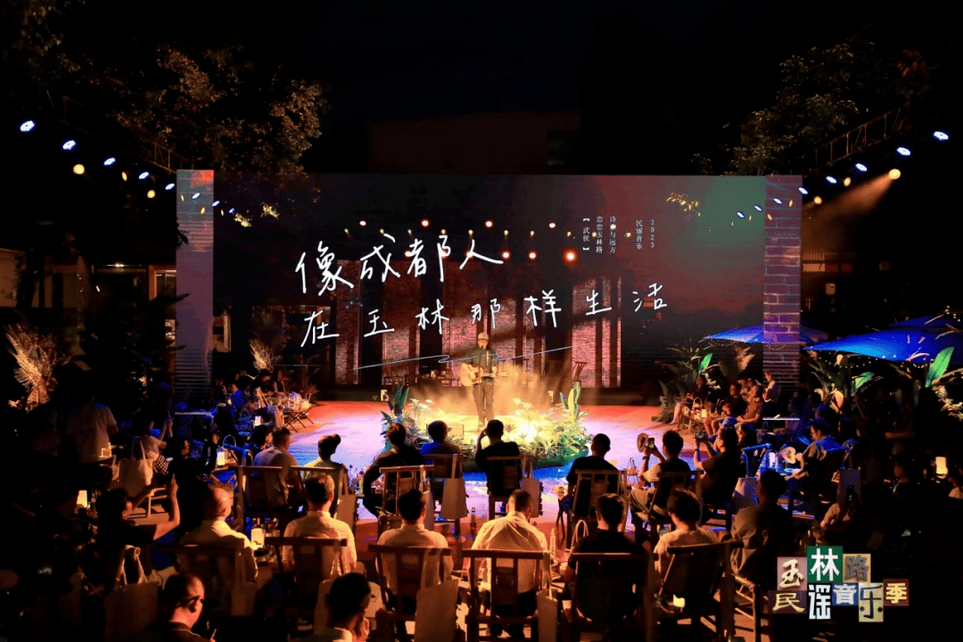 2023年10月29日,2023玉林路民谣夜演唱会在省体育馆举行,陈楚生、马頔、赵照、低苦艾乐队等音乐人为现场4900位观众呈现一场民谣盛典。此次活动获《新闻联播》等媒体跟踪报道,“像成都人在玉林那样生活”成为具有辨识度的新的城市IP,间接拉动区域旅游人流200余万人次。