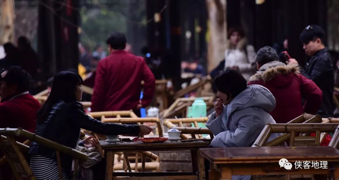 ▲这里物产丰饶,盛产安逸,上图为成都人民公园鹤鸣茶园(@李忠东)