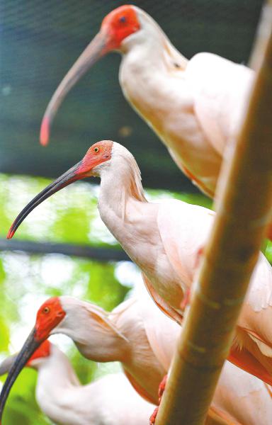 来到四川后的它们在口味上也有了一些变化,都很喜欢饲养员特意加在食物中的黑鱼和虾。从9月开始,基地内的朱鹮开始陆续换毛,羽毛的颜色变成了粉红色。“现在朱鹮的种群正在扩大,我们已经在乐山找到适合野外驯化的基地,三代朱鹮的健康成长为今后的野化训练打下了基础。”杨海琼告诉记者。