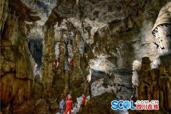 从队员初步探索的情况来看,该溶洞应该为裂隙型溶洞,带有酸性的雨水渗到石灰岩裂隙中,因受重力影响,沿着垂直裂隙发生溶蚀、重力崩塌,形成该溶洞。溶洞中所形成的石钟乳、石柱、石笋等,以滴石型沉积为主。