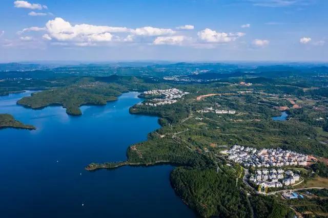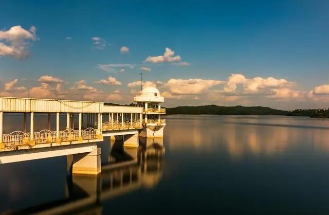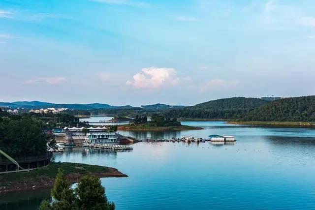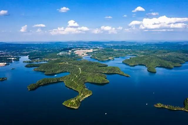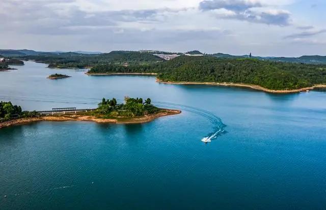 仙海湖水域辽阔,岛屿众多,湖岸曲折,形成“山抱水,水漫山”“山衬水,水映山”,山水一色,水乳交融的天然画卷。