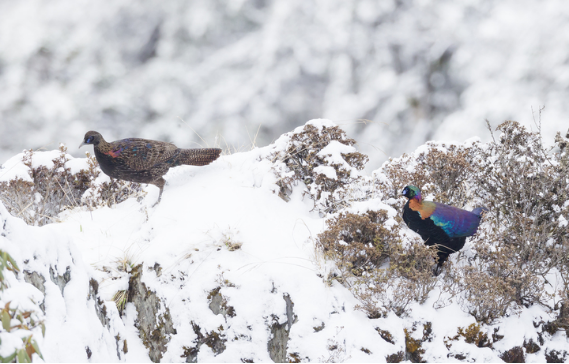 雪山上的绿尾虹雉(吴秀山 摄)