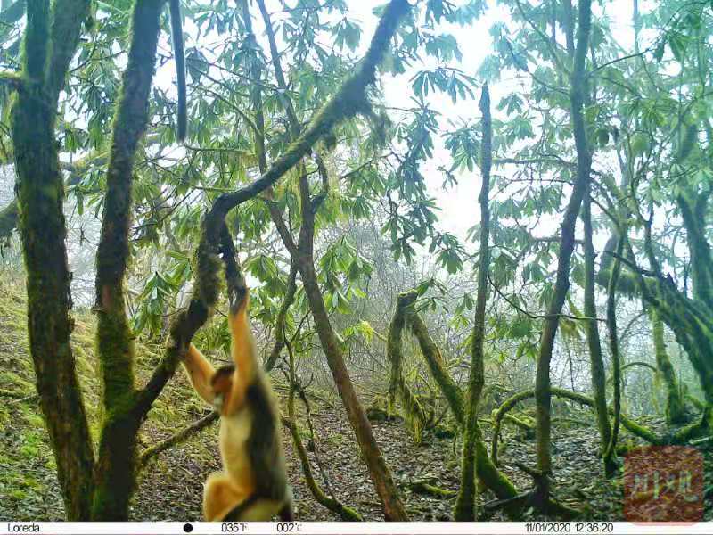 近日,四川黄龙省级自然保护区管理局自然资源保护与科研处组织进行2020年度野生动植物监测第四次日常巡护,在龙滴水保护区监测点多次发现川金丝猴种群活动痕迹和粪便实体,并首次用红外相机记录了多张清晰照片。