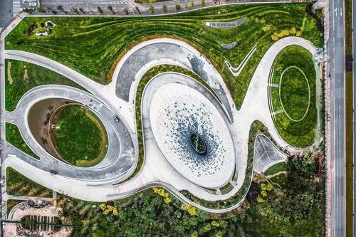 在人车分流方面,致力于让人们在整个园区里犹如置身生态公园;