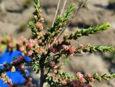 疏花水柏枝属直立灌木,高可达1.5米,花色大部分为粉白色,只有很少的植株开粉红色或淡紫色花,花果期很长。