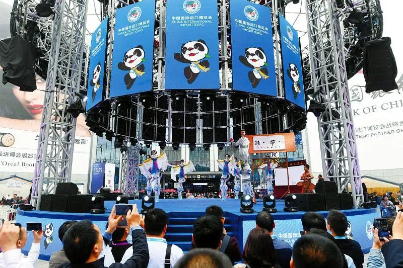 2019年11月7日上午,南充川北大木偶、川北王皮影两项国家级非物质文化遗产项目亮相第二届中国国际进口博览会, 并进行精彩展演。图为川北大木偶展演(肖雨杨 摄,图片来源:四川日报)