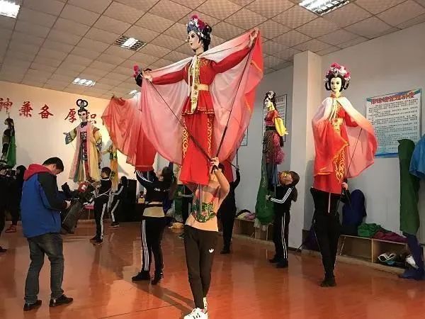 川北大木偶,世界唯一的大木偶艺术,中国首批国家级非物质文化遗产,被誉为“世界罕见的木偶艺术”“中国民间艺术的冠冕”。木偶戏可分为提线木偶、药发木偶、布袋木偶、水木偶、肉木偶和杖头木偶。川北大木偶属于杖头木偶。杖头木偶具有丰富的真人技术表演,就是用竹杖或木棒支撑木偶的躯体,表演者一手握住竹杖或木棒,像撑伞一样把木偶举起,另一只手操作木偶上的两根铁签,从而让木偶比划各种动作。