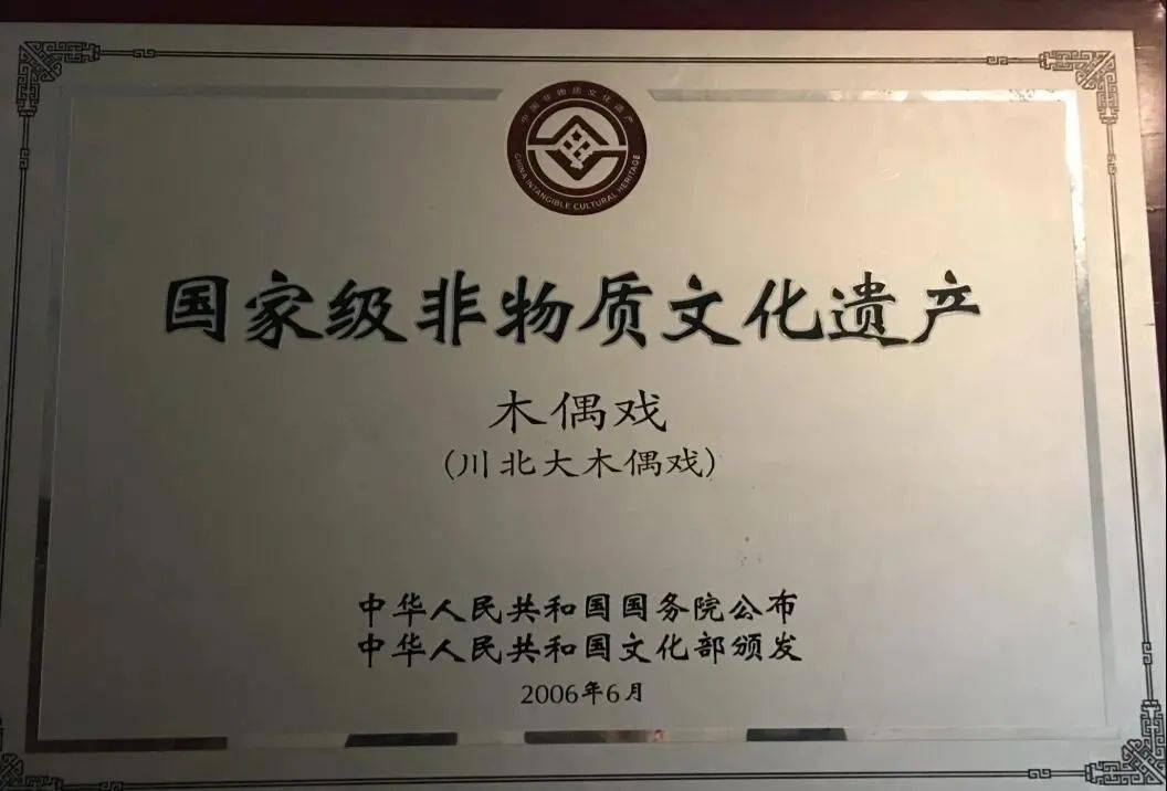 2006年6月,川北大木偶戏被列入中国首批国家级非物质文化遗产名录。