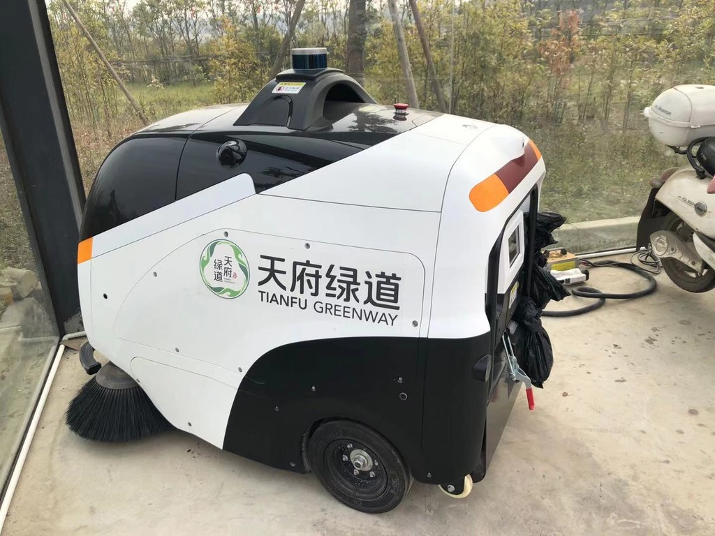 智慧无人扫地机,可主动识别游客,并迅速避开人群。摄影 陈碧红