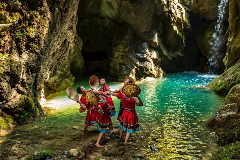 大自然的鬼斧神功把山、水、洞溶为一体,浓墨重彩地将500平方公里的巨型画卷展示于天地之间。
