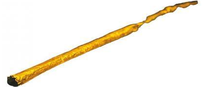 1986年7月,三星堆祭祀坑发掘第10天晚上。考古队领队之一的陈显丹正在加紧清理文物,很快有了惊喜的发现:黑色灰渣中露出了一点金黄色。随着竹签和毛刷的继续清理,一条雕刻着精美纹饰、弯弯曲曲的黄金制品露了出来。“当时大家以为是古蜀王的金腰带,后来发现是一根杖。金皮里面,还残留有炭化的木渣。”经过测量,这根金杖有1.42米长,重约500克。