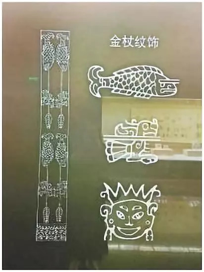 在陈显丹看来,这组图案组成一幅典型的“象形文字”:杖上的人物头戴五齿高冠,与青铜大立人所戴相同,因此身份位高权重。金杖上又有鱼、鸟等图案,因此它极可能表现的是古蜀王中的“鱼凫王”,金杖的主人也应该是他。