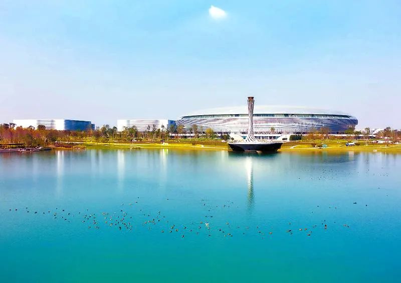 2025年7月7日,四川省委常委、成都市委书记曹立军在兴隆湖湖滨场馆中心,听取世运会场馆建设工作情况汇报(图源:成都市人民政府网)