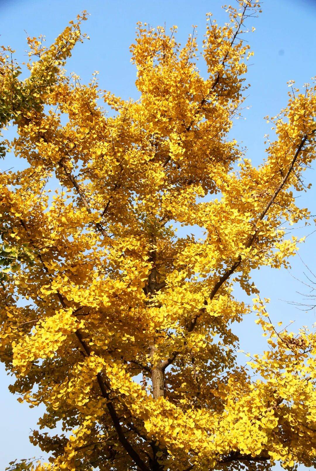 银杏树的枝和干,显得那么苍劲和有力。银杏树的叶子,开始泛黄,有的甚至开始脱落,在天空中飞舞。最后,离开枝头的银杏叶,终归是又回到了大地。