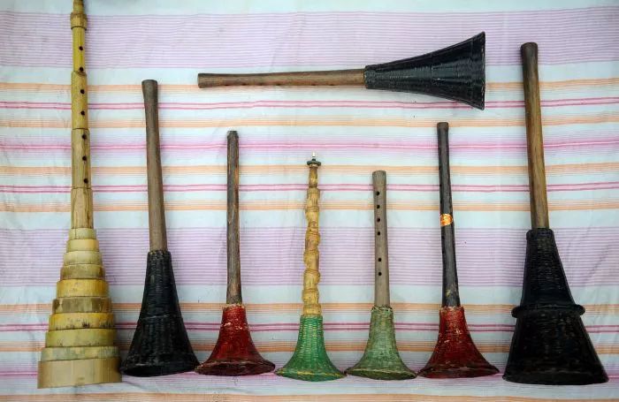 达州市大竹县月华乡拍摄的各种类型的竹唢吶(图片来自新华网)