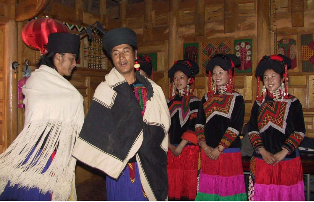 彝族婚礼“克智”的说唱虽说有一定程序,但它不需任何道具,不讲究场地,大都以火塘为中心,主客双方各列一方席地而坐,边饮酒边对歌说唱,形式多样自然灵活,有坐唱、站唱、边舞边唱等方式。