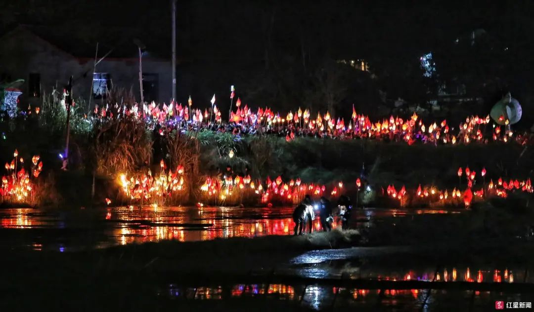 傍晚,家家户户的蛴蟆灯便陆陆续续地亮了。在鞭炮声中,成千上万的人们不约而同地举着“蛴蟆灯”聚集到一起。老人牵着孙子,母亲抱着孩子,朋友们三五成群,向离家最近的河滩走去。河滩上,人们将手中的整只蛴蟆灯点燃,一边欢唱着“蛴蟆(儿)公,蛴蟆(儿)婆,十四十五撵下河”。在将蛴蟆(儿)送下河后,一定要把火把或蛴蟆(儿)灯扔掉,弃于河田或插于土,不然蛴蟆儿瘟会被带回家的,给你家带来霉运的。蛴蟆节历经演变,已成为一种独特的地方民俗文化,为南充市宝贵的非物质文化遗产。