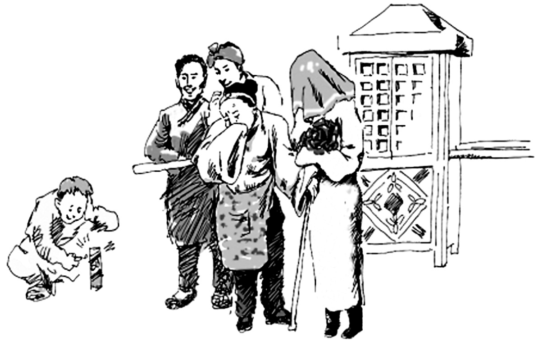 哭媒人的语调却不同:“韭菜开花一二台,背时的媒人天天来/蚕豆开花绿茵茵,背时的媒人嚼舌根/豌豆开花夹对夹,背时的媒人想鞋袜/板栗开花球对球,背时的媒人想猪头/你做媒人想饮酒,骗得猴子满山走/好话哄骗爹和娘,媒人死后变猪狗。”(《哭媒人》)这种愤懑的情绪,与其说哭,还不如说是变着花样儿骂媒婆。这个时候现场往往很活跃,气氛转悲为喜、破涕而笑。