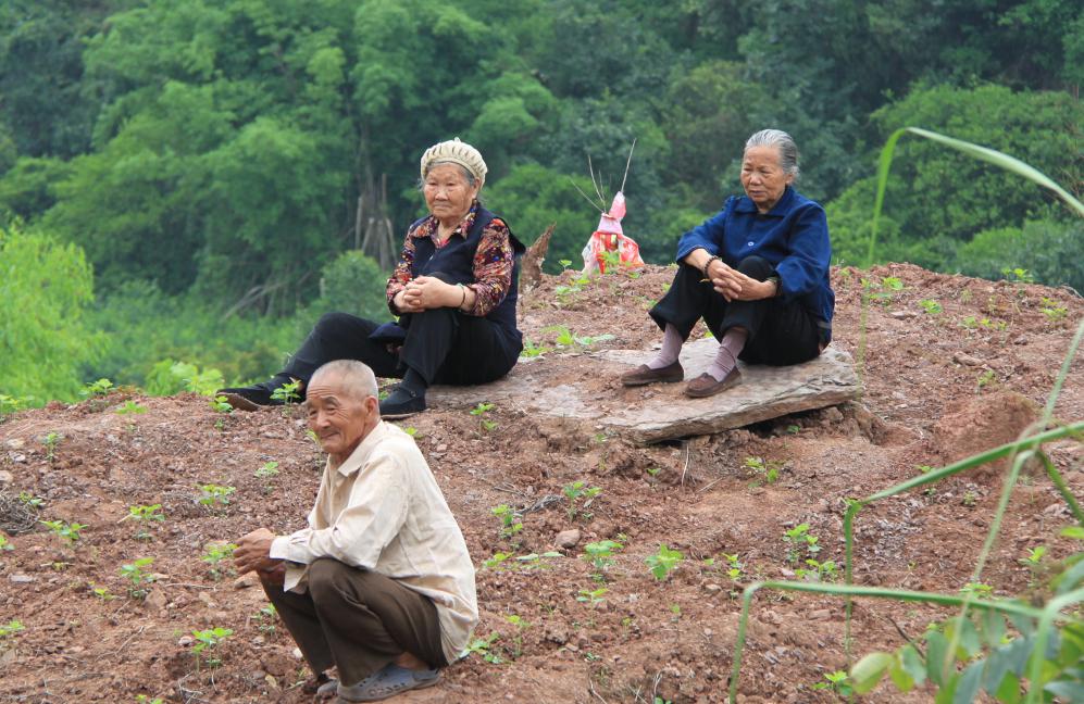 金堂县五凤镇安家沟原高峰村老人(中为贺光云老人)(刁觉民 供图)