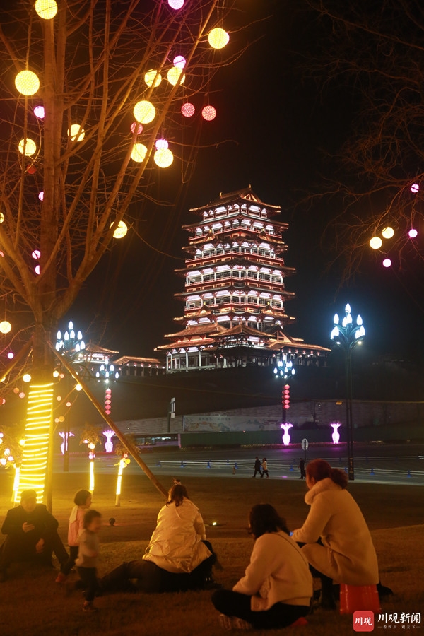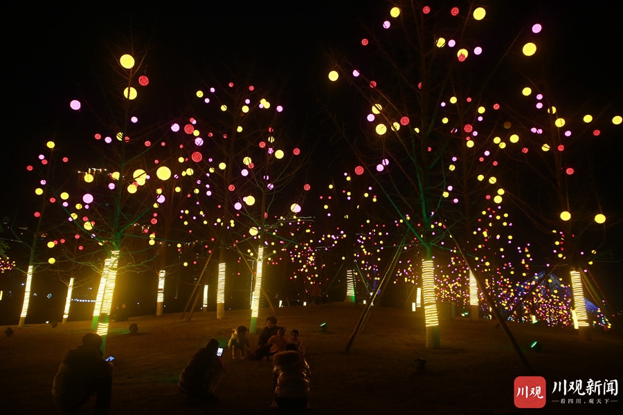宜宾市叙州区大地坡公园,市民徜徉“灯海”。
