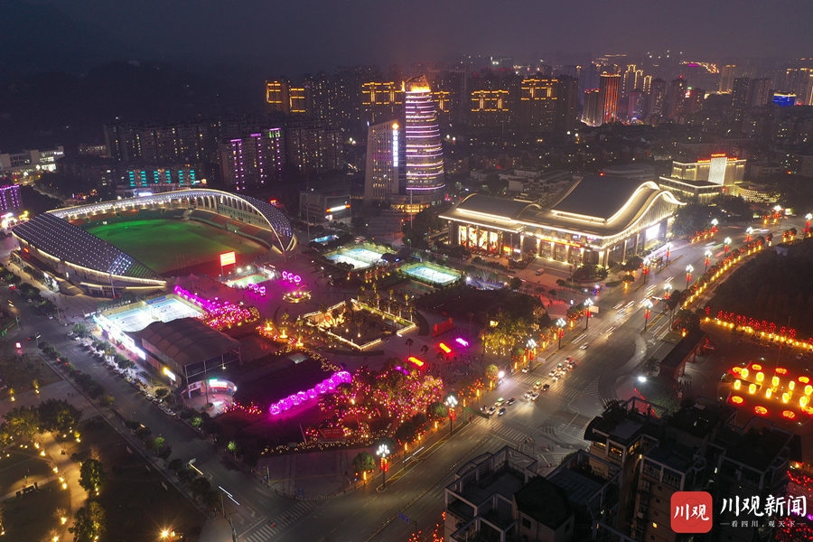 宜宾市叙州区市政广场,春节亮化夜景美。