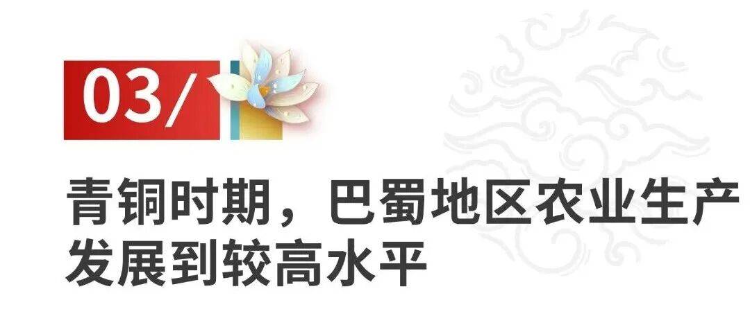 巴蜀地区进入青铜时期较晚,相当于中原地区商周至春秋战国时期,对应蚕丛时期到开明王朝。在这个时期,巴蜀地区农业生产已经发展到较高的水平,所以,杜宇王在成都平原地区“教民务农”,而巴地也有“化其教而力农务”的说法。